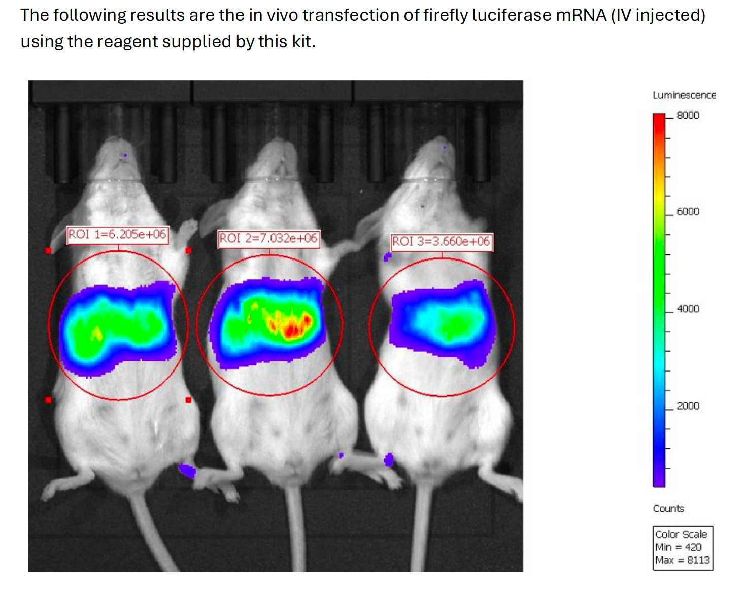 The above prepared RNA-LNP transfection mix can then be used directly for in vivo injections. Please note all reagents are supplied for in vivo use and please do not use 0.22μm membrane to filter the RNA-LNP mix.